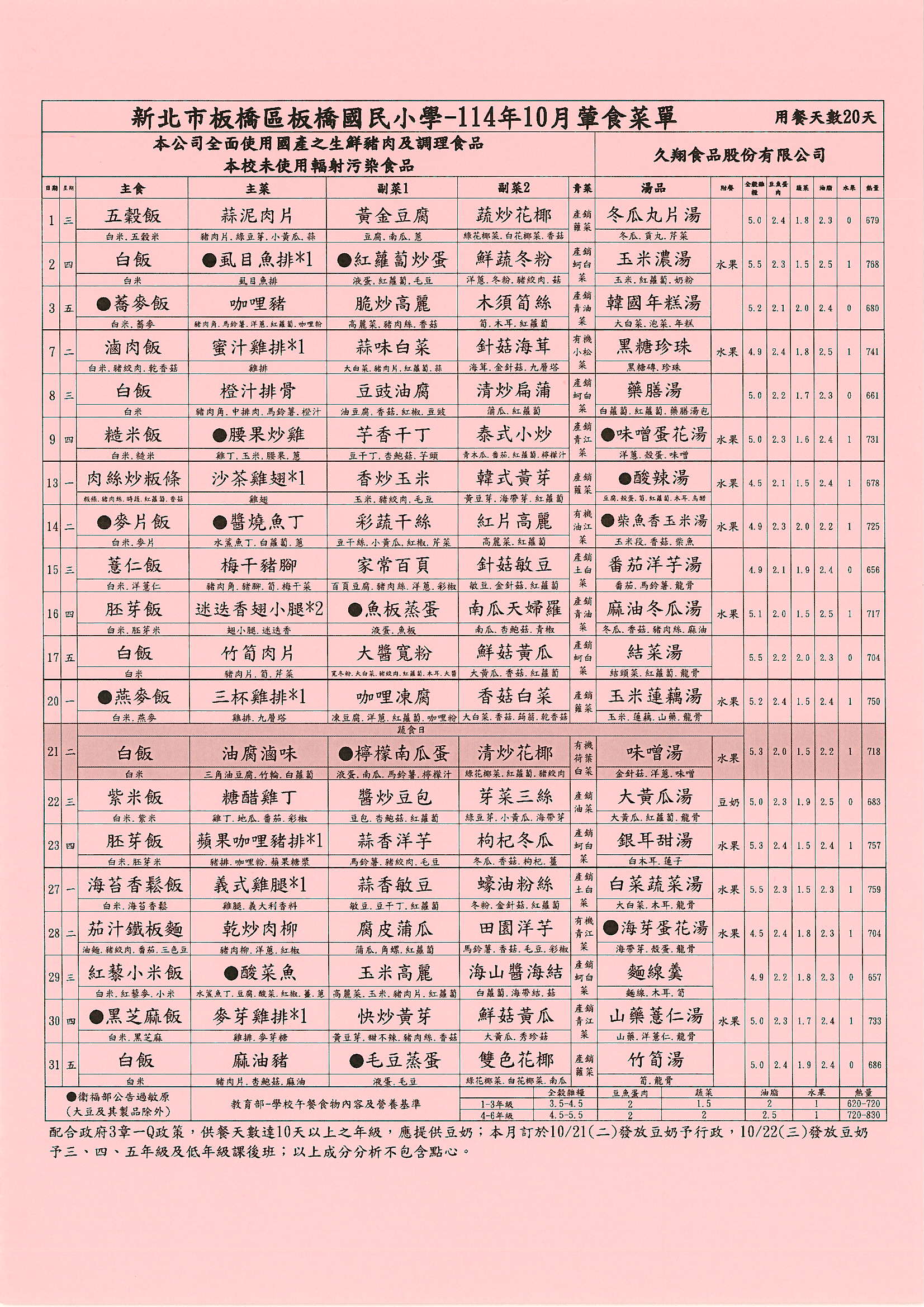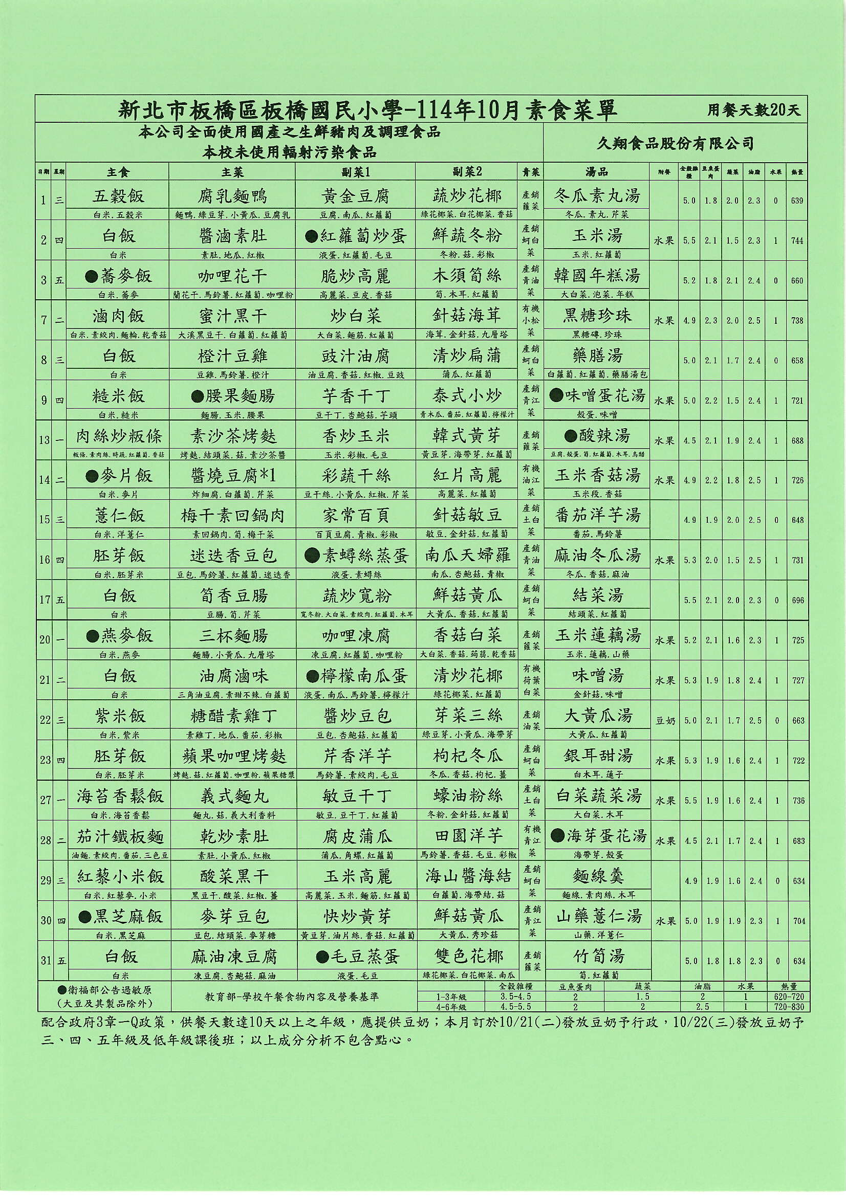 114年10月菜單